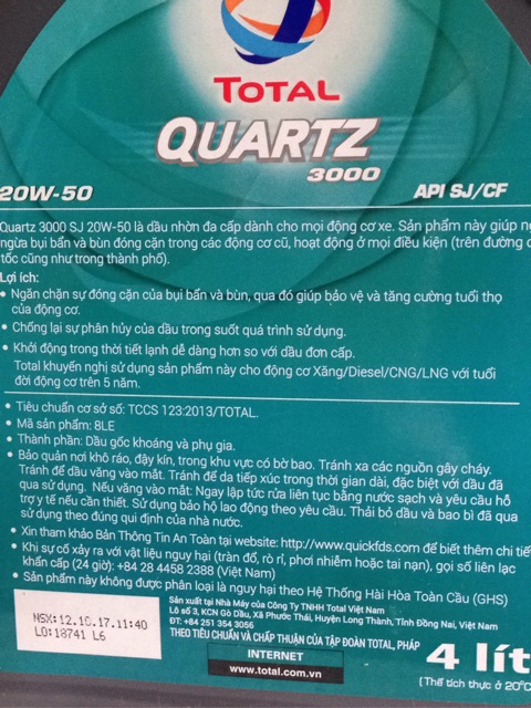 Ô tô > Dầu nhớt và phụ gia ô tô > Mỡ & Chất bôi trơn || Dầu nhớt động cơ ô tô TOTAL Pháp loại đa cấpCòn hàng
