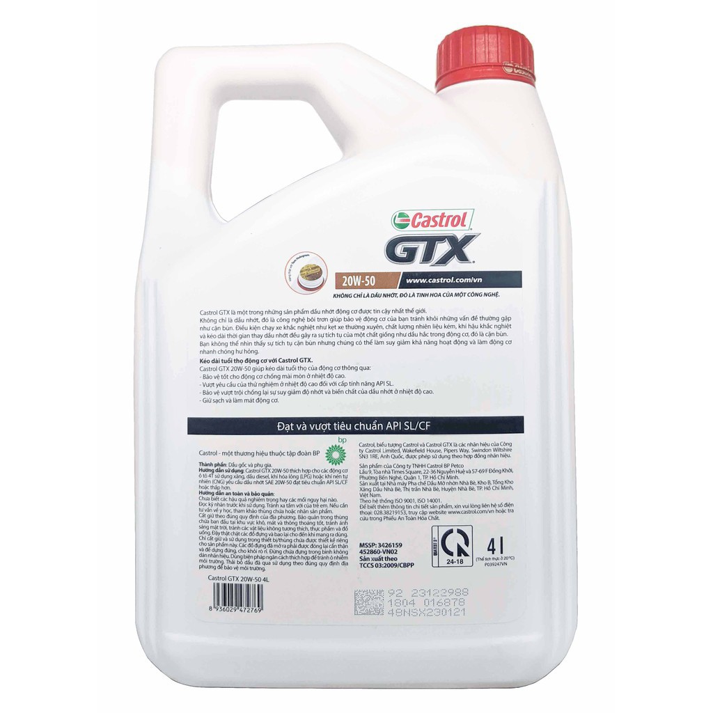 Thông số kỹ thuật: CASTROL GTX 20W50 SL/CF