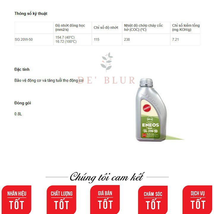 👉 DE’ BLUR SHOP chuyên cung cấp sỉ & lẻ sản phẩm Nhớt Xe Số ENEOS SG 20w50 800ml