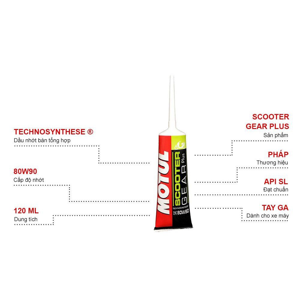 Ô tô > Dầu nhớt và phụ gia ô tô > Mỡ & Chất bôi trơn || Dầu nhớt láp xe ga MOTUL Scooter Gear Plus 80W90 GL-5 120mlCòn hàng