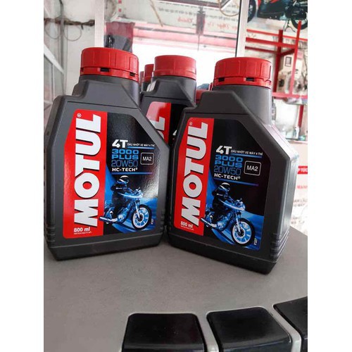 Dầu- Dung tích 800mlMotul 3000 Plus 4T 20W50 với công nghệ chống trượt ly hợp ướt giúp động cơ vận hành êm, sang số dễ dàng. Đặc biệt, sản phẩm giúp tránh được hiện tượng ly hợp bị trượt khi sang số, giúp làm giảm nhiệt độ động cơ khi vận hành.