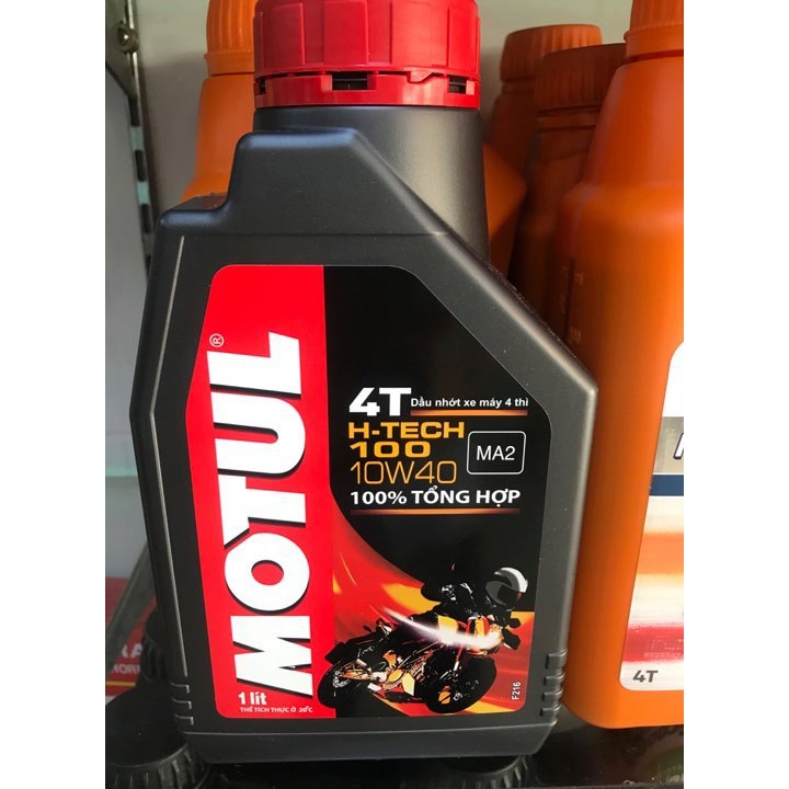Dầu Nhớt Motul H-Tech 100 10W40Nhớt Motul H-Tech 100 4T 10W40 là sản phẩm dành cho xe máy động cơ 4 thì của tập đoàn Motul – nhà sản xuất dầu nhớt hàng đầu của Pháp. Nhớt Motul H-Tech 100 4T 10W40 đã được nhiều hãng xe máy uy tín tín nhiệm và khuyên dùng trong thời gian qua, chứng tỏ khả năng vượt trội của sản phẩm dầu nhớt này đối với phương tiện đi lại tại nước ta, không chỉ bôi trơn động cơ giúp xe vận hành êm ái mà còn bảo vệ chiếc xe máy của bạn bền bỉ theo thời gian.