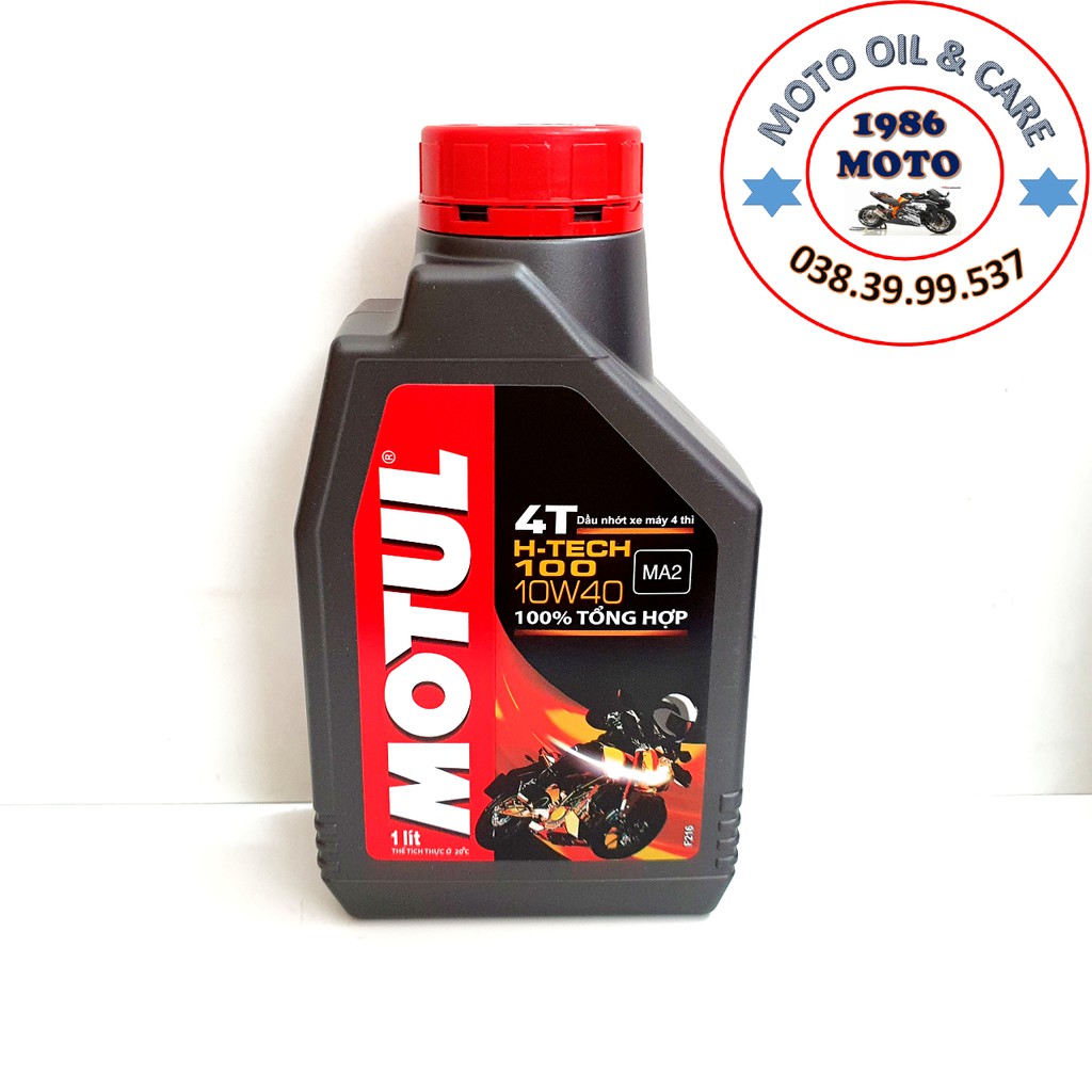 Dầu nhớt MOTUL H-Tech 100 10W40 100% tổng hơpH-TECH 100 4T 10W40 - Thích hợp cho các dòng xe số và côn tay thể thao của các hãng Honda, Yamaha, Suzuki, SYM, ...