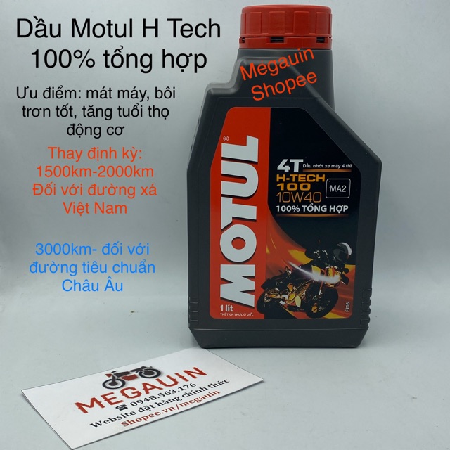 Ô tô > Dầu nhớt và phụ gia ô tô > Mỡ & Chất bôi trơn || Dầu nhớt Motul H-TECH 100 4T 10W40 (1 lít)Còn hàng