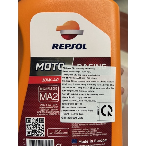 Ô tô > Dầu nhớt và phụ gia ô tô > Mỡ & Chất bôi trơn || Dầu nhớt Repsol Racing 10w40 nhập khẩu chính hãngCòn hàng
