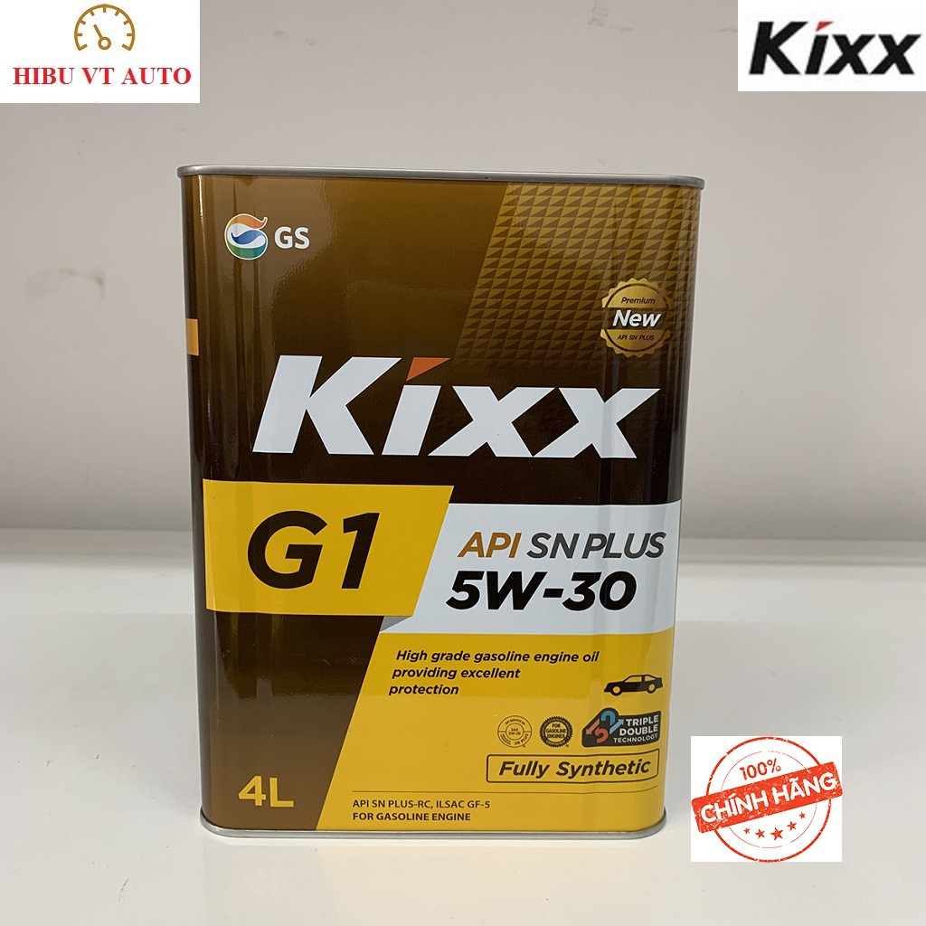 Dầu nhớt tổng hợp cao cấp Kixx G1 SN PLUS 5W30 4L Thùng thiếc Công nghệ Triple DoubleHIBU VT AUTO chuyên phân phối sản phẩm Kixx G1 5W-30 API SN PLUS/GF-5/RC/SF