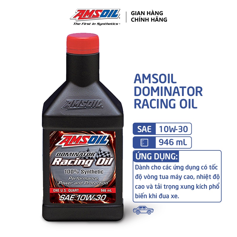 Dầu AMSOIL Tổng hợp DOMINATOR 10W30 Racing cung cấp hiệu suất vượt trội và bảo vệ tối đa trong các ứng dụng đua xe và hoạt động trong điều kiện công suất cao. DOMINATOR được thiết kế để chống chịu tốt hơn với tốc độ vòng tua máy cao, nhiệt độ cao và tải trọng xung kích phổ biến trong các ứng dụng đua xe. Công thức mạnh mẽ của nó, đã được các đội đua vô địch thử nghiệm và xác nhận, được thiết kế để cung cấp mã lực tối đa mà không ảnh hưởng đến khả năng bảo vệ động cơ. DOMINATOR cung cấp khả năng bảo vệ cấp thẳng trong công thức đa cấp.