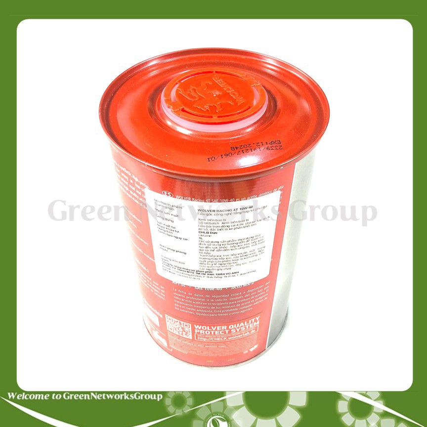 * Tên hàng : Dầu nhớt Wolver Racing Synthetic 4T 10W40 (1L) Greennetworks* Tên của tổ chức/cá nhân chịu trách nhiệm về sản phẩm: CTY TNHH TMDV XD KẾT NỐI XANH - GreenNetworks