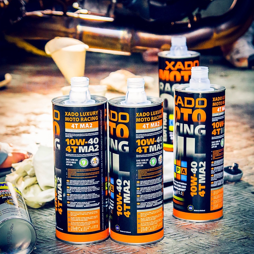 XADO LUXURY MOTO RACING 4T MA2 10W40 - Dầu nhớt tổng hợp hoàn toàn cho xe máy. Công nghệ Ester và hoạt chất hồi sinh REVITALIZANT®.XADO Luxury Moto Racing Oil 10W-40 4T MA2 là một loại dầu động cơ siêu tổng hợp đặc biệt của thế hệ mới dành cho động cơ 4 thì hiện đại của thiết bị động cơ.