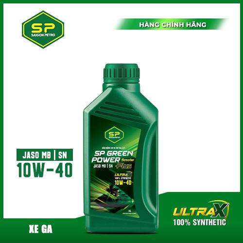 Ô tô > Dầu nhớt và phụ gia ô tô > Mỡ & Chất bôi trơn || Dầu nhớt xe ga SP Green Power Scooter Plus 10W40, Dầu tổng hợp 100%Còn hàng