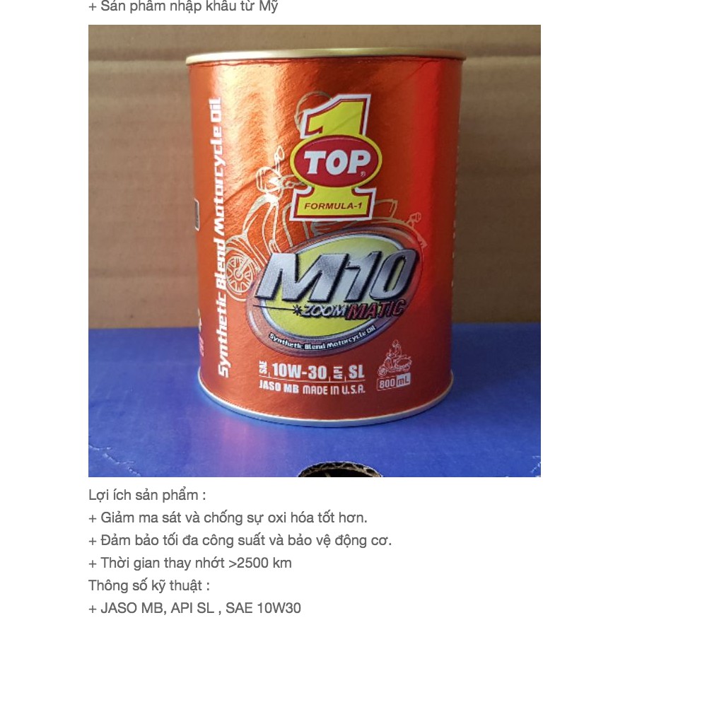 Ô tô > Dầu nhớt và phụ gia ô tô > Mỡ & Chất bôi trơn || Dầu Nhớt xe ga Top 1 M10 Zoom Matic 10W30 0.8 lít MB SLCòn hàng