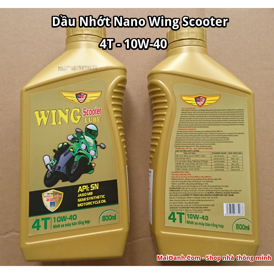 Ô tô > Dầu nhớt và phụ gia ô tô > Mỡ & Chất bôi trơn || Dầu nhớt xe máy cao cấp nano Wing Scooter - API SN 10W-40 (800 ml) - Xe GaCòn hàng