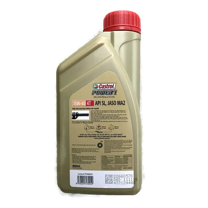 Ô tô > Dầu nhớt và phụ gia ô tô > Mỡ & Chất bôi trơn || Dầu nhớt xe máy Castrol Power1 4T 15W-40 API SL JASO MA2 (0,8 lít)Còn hàng