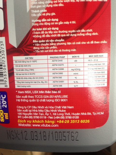 Dầu nhớt xe máy Vilube 0,8l 20w50 là sản phẩm của công ty dầu nhờn và hoá chất Việt nam .Được sản xuất bằng công nghệ HyPo Tech với phụ gia cao cấp. Sản phẩm chính hãng nên bạn yên tâm về chất lượng .Bạn nên thay định kì sản phẩm khi xe của bạn vận hành được 1500km để chiếc xe của bạn vận hành êm áiGiá LGNS