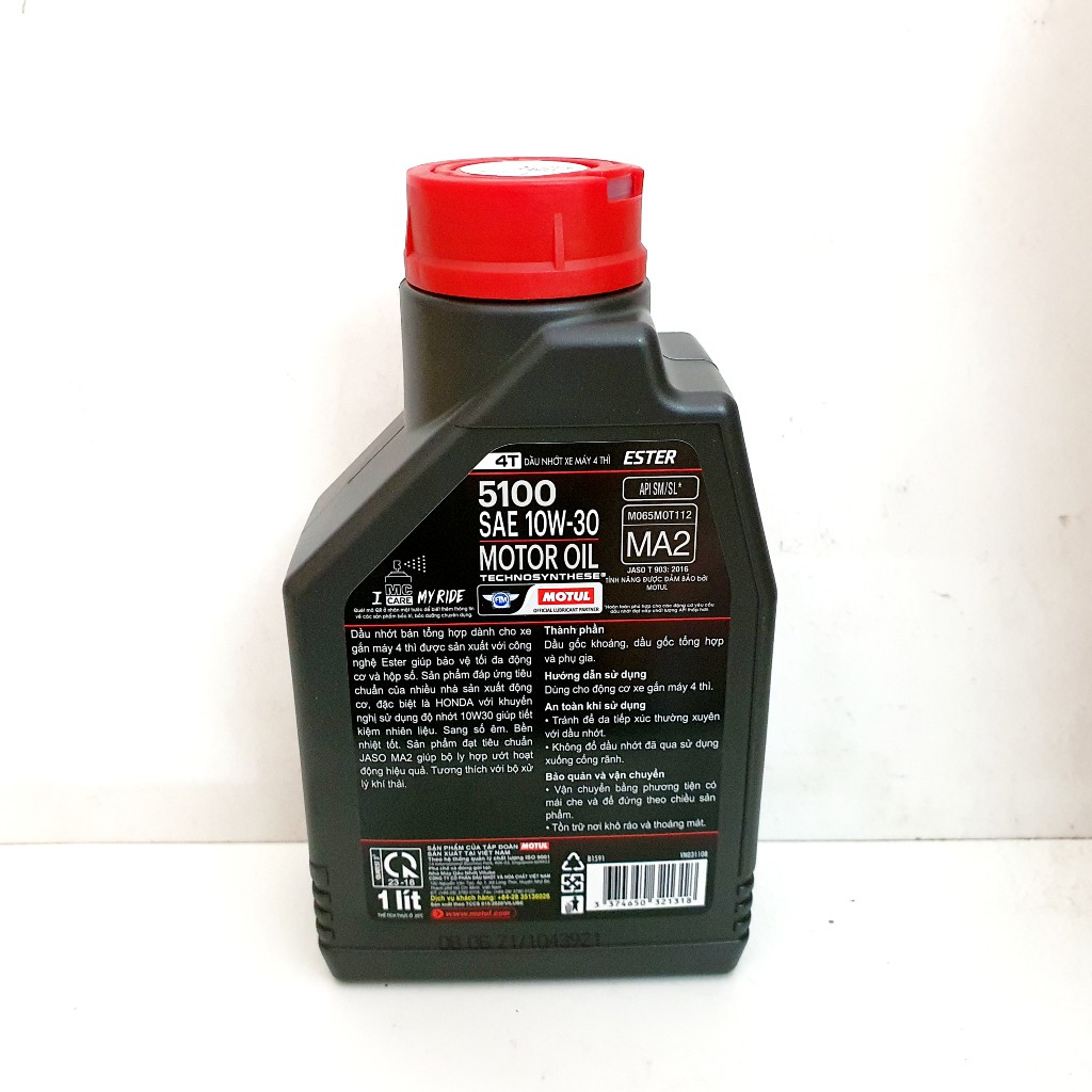 Dầu nhớt xe số cao cấp Motul 5100 10W30 người em song sinh với Motul 7100 với công thức Ester có mùi thơm nhẹ đặc trưng.ỨNG DỤNG: