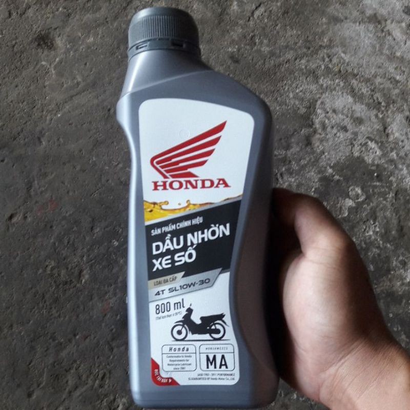 Dầu nhớt xe số Honda chính hãng 800ml sl 10w_30loại dầu nhờn đa cấp sử dụng cho xe máy 4ky được phát triển bởi trung tâm nghiên cứu và phát triền honda được kiểm tra độ bền trong từng mức tăng tốc của động cơ