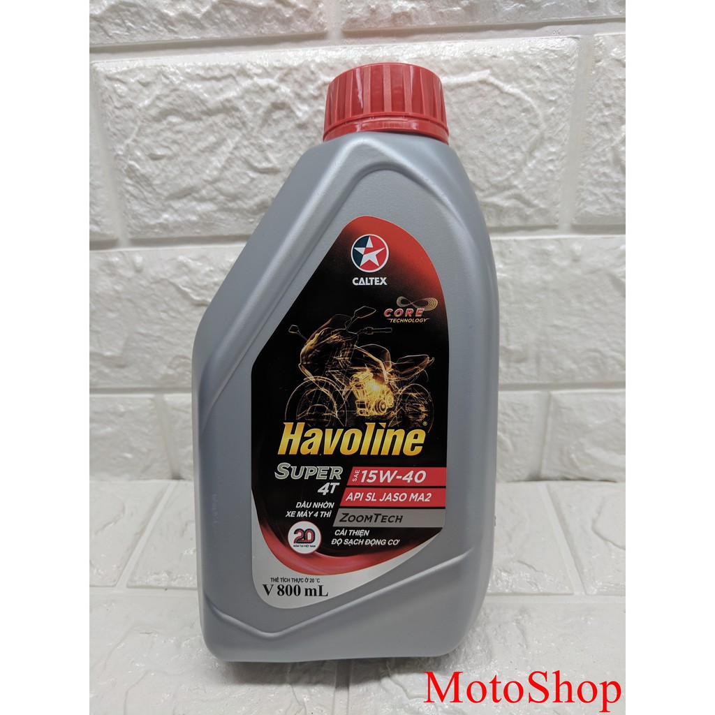 Giới thiệu DẦU NHỚT XE SỐ , XE CÔN TAY CALTEX HAVOLINE SUPER 4T SAE 15W-40,LOẠI 20W-50 CHAI 0,8L