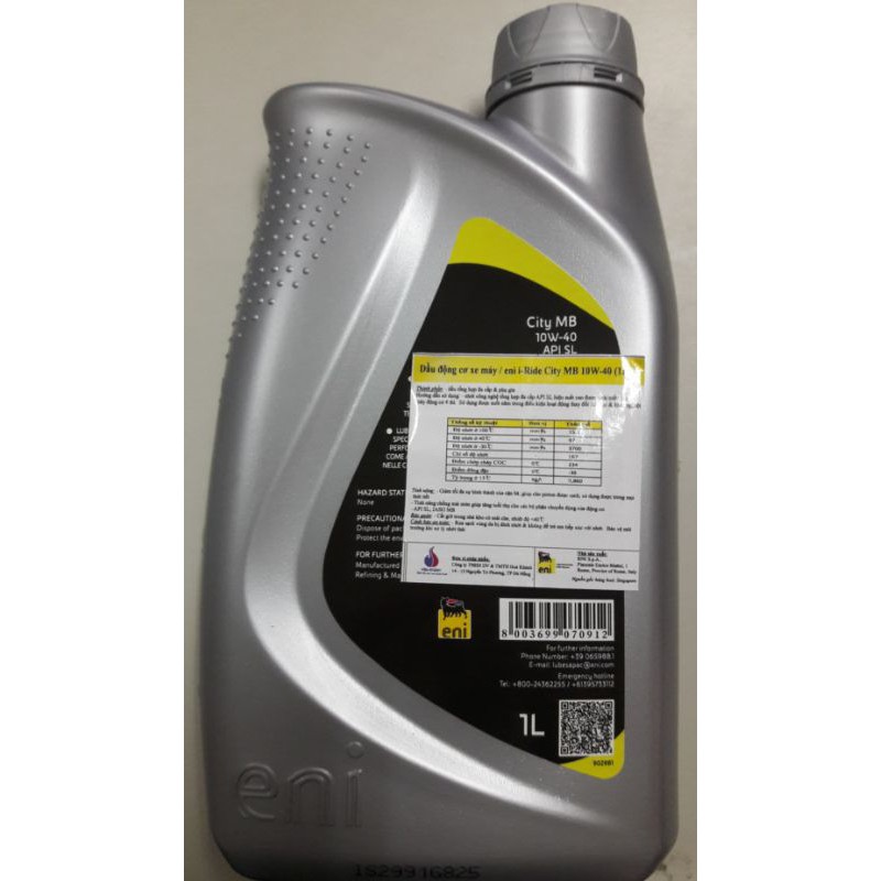 Dầu nhớt Ý công nghệ tổng hợp cho xe máy eni i-Ride City MB moto 10W-40 SL MB (1 Lít)