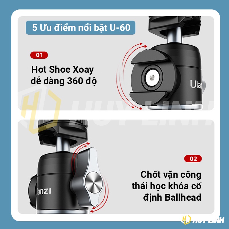 Giới thiệu Đầu nối chuyển tiếp Ulanzi U60 Ballhead chịu tải 10Kg dùng cho tripod