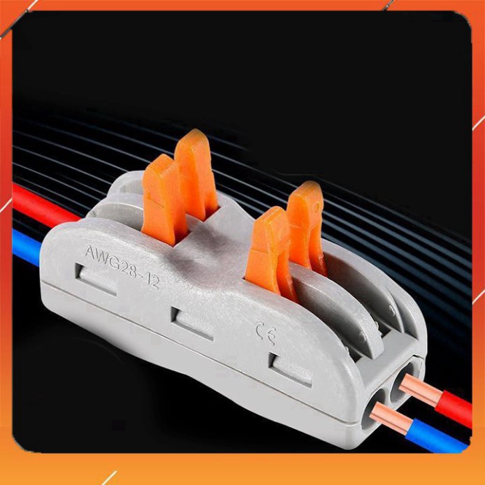 Cút nối dây điện nhanh 2 đầu, dụng cụ nối dây điện nhanh, an toàn hiệu quả, cực kì dễ dùngCút nối dây điện nhanh giúp bạn nối các dây điện với nhau trong vòng 3 giây, không cần kìm, không cần băng dính cách điện và việc tháo dây khỏi cút nối khi không cần đến cũng dễ dàng như lúc lắp vào. Hỗ trợ nối cùng lúc từ 2-5 dây điện đồng thời, mối nối đẹp, gọn gàng, an toàn, chống chạm chập điện, cháy nổi trong các hộp âm tường hoặc hộp nổi…..