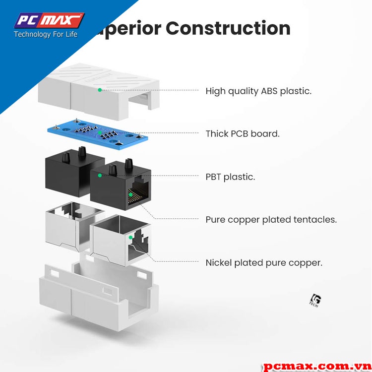 Đầu nối Ugreen 20390 được sản xuất bằng các chất liệu cao cấp như lõi đồng, chân kim tiếp xúc mạ vàng 23K đem đến khả năng dẫn truyền tín hiệu cực kỳ ổn định và nhanh chóng.