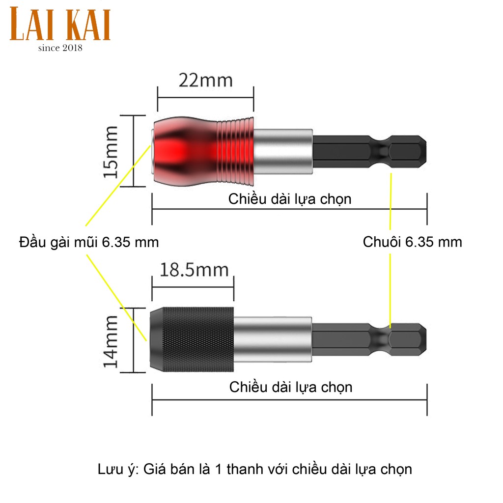 • Chuôi lục giác 6.35mm, đầu gài mũi vít 6.35mm.