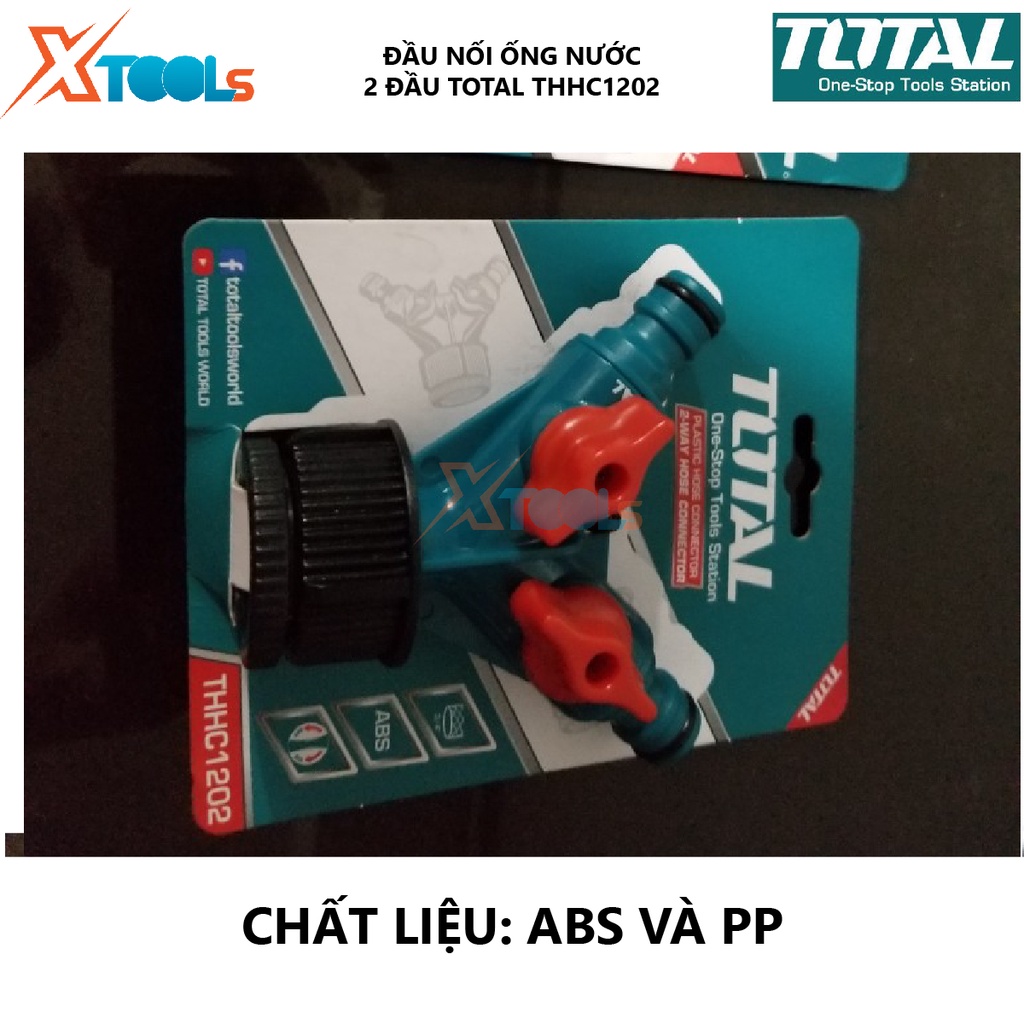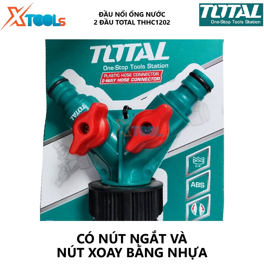Đầu nối ống nước 2 đầu TOTAL THHC1202 bộ chia 2 ống nước nút ngắt,nút xoay nhựa Chất liệu nhựa AB, tưới sân vườn