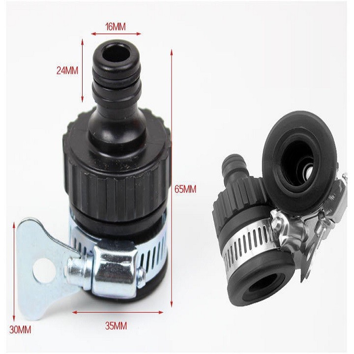 ĐẦU NỐI ỐNG NƯỚC TẠI ĐẦU VÒI NƯỚC CÓ KHÓA VẶNCông dụng: cao su mềm với vòi nước thông thường phục vụ cho việc tưới cây, vòi xịt rửa xe.... nhanh chóng, không phải dùng dây cao su hay đai siết.