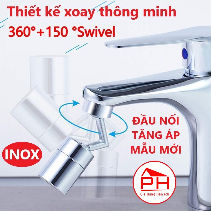 - ĐẦU NỐI INOX TĂNG ÁP VÒI NƯỚC tăng áp xuất nước có thể xoay 360 - 720 độ bao phủ toàn bộ bồn rửa.