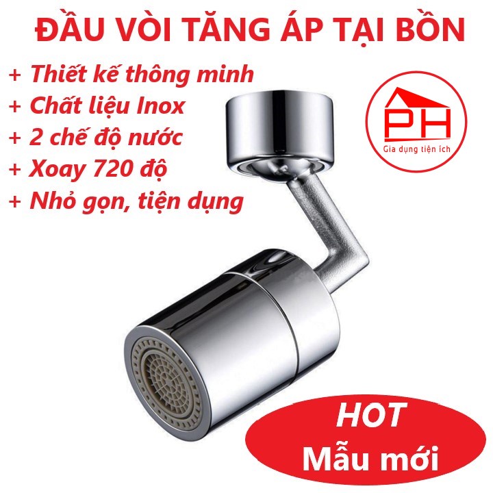 Giới thiệu ĐẦU NỐI TĂNG ÁP VÒI NƯỚC bồn rửa chén bát bồn lavabo rửa mặt (Xoay 720 độ) thiết kế thông minh - Gia dụng Phước Hòa