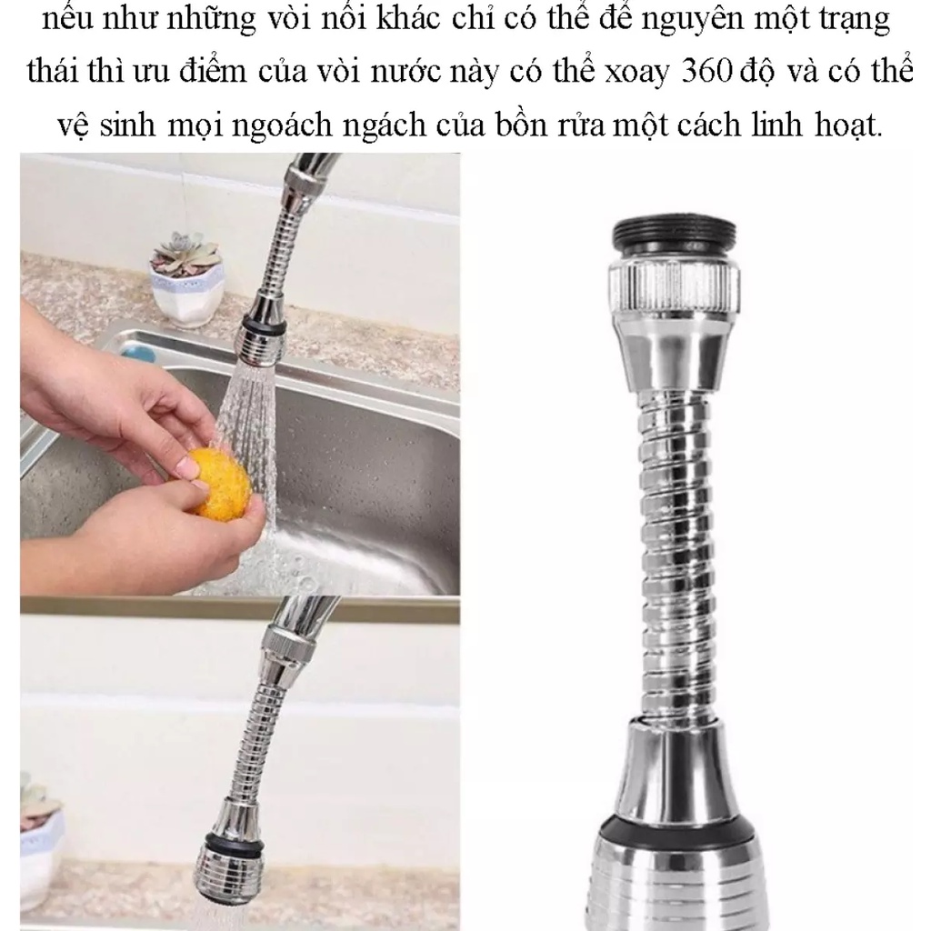 - Ngoài ra, khi sử dụng òi nối tăng áp xoay 360 độ này còn hạn chế được việc rửa bát đĩa nước bắn ra ngoài làm ướt sàn nhà.