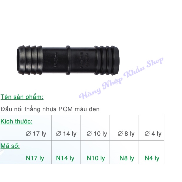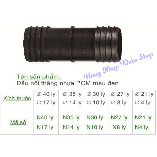Nối thẳng từ 4 ly đến 40 lyChất liệu: nhựa POM