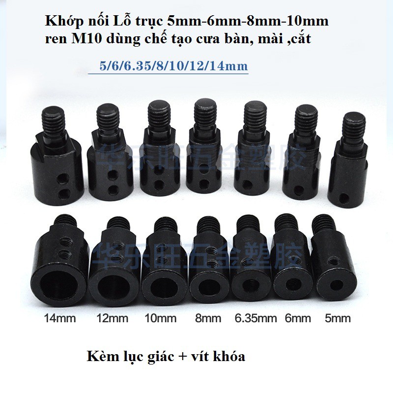 Giới thiệu Đầu nối trục lỗ 5mm,6mm,8mm,10mm đầu trục nối đầu chuyển kẹp lưỡi cưa máy cắt 10mm