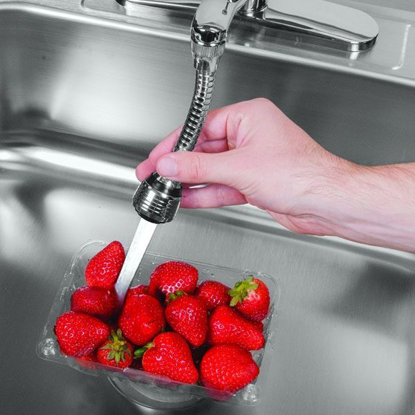 Dụng cụ nối vòi nước thiết kế dạng vòi sen dùng để điều chỉnh dòng nước ở bồn rửa giúp bạn rửa chén bán, rau củ, thực phẩm… tiện lợi dễ dàng hơn.– Chất liệu Inox cao cấp