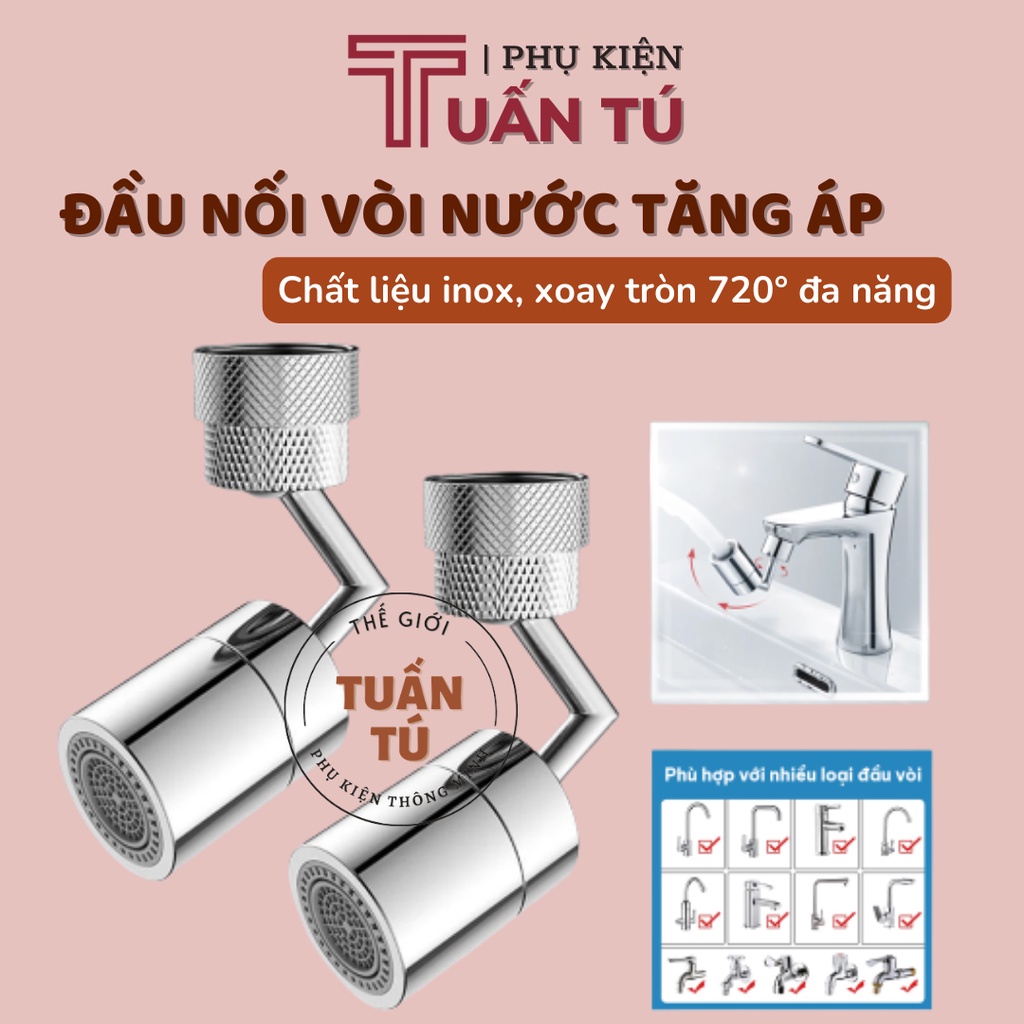 Đầu nối vòi nước đầu vòi nước tăng áp xoay 720 độ đa năng chất liệu inoxĐặc điểm nổi bật:
