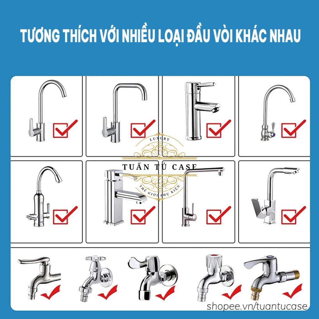- Phù hợp đầu vòi nước ren 22mm - 24mm