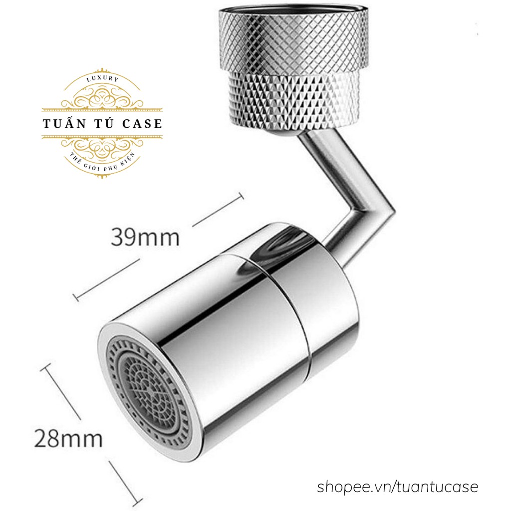 - Đầu nối vòi nước tăng áp xoay 720 độ lắp vòi nước chậu rửa bát chén lavabo với 2 chế độ nước chảy