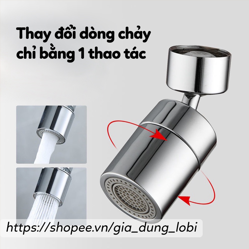- Đầu nối vòi nước tăng áp xoay 720 độ lắp vòi nước chậu rửa bát chén lavabo với 2 chế độ nước chảy