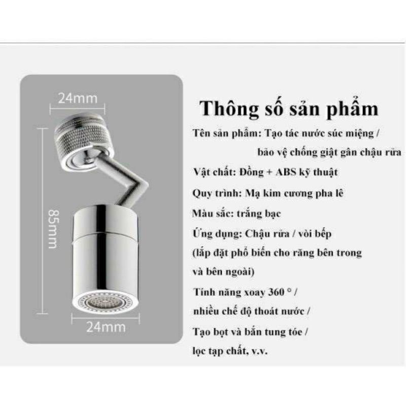 Đầu nối vòi nước tăng áp xoay 720 độ lắp vòi nước chậu rửa bát chén lavabo với 2 chế độ nước chảy
