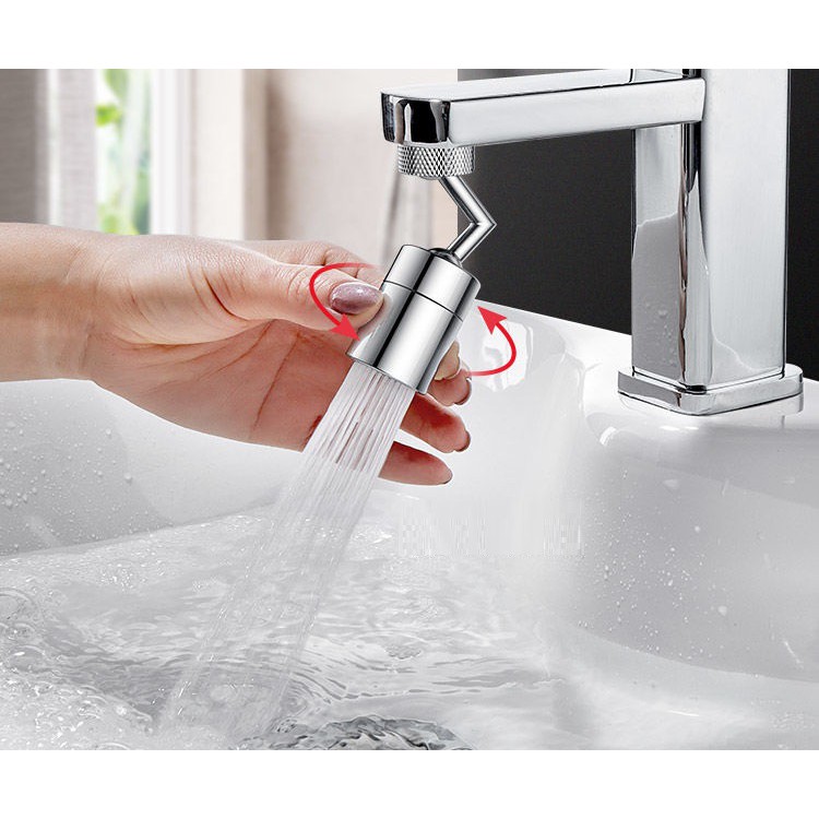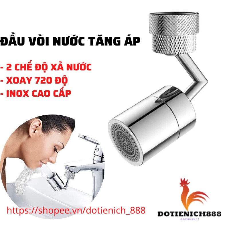 Đầu nối vòi nước tăng áp xoay 720 độ lắp vòi nước chậu rửa bát chén lavabo với 2 chế độ nước chảy