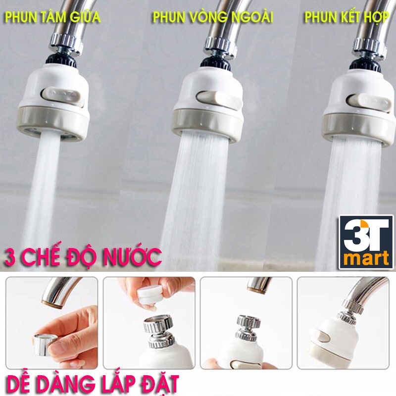 Đầu nối vòi rửa bát tăng áp 3 chế độ xoay 360 độ