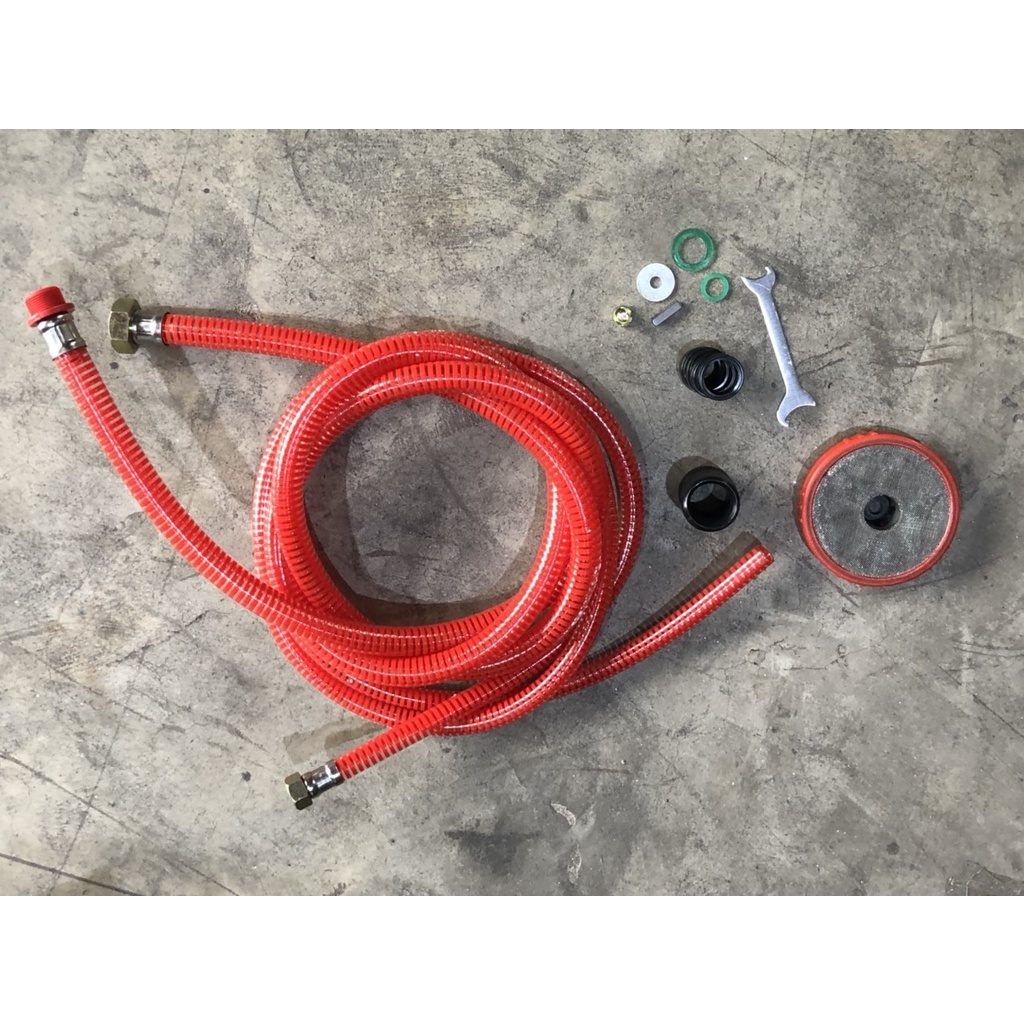 - Dây hút, Dây xả, Bộ lọc rác và đầu nối, Bộ phốt, Pully, Khóa xiết phốt, Nút chỉnh áp lực.