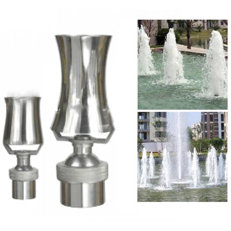 Thiết bị đầu phun được làm từ chất liệu đồng mạ Crom có tính năng không gỉ khi được hoạt động và chịu áp lực trong môi trường nước, có khả năng chống ăn mòn cao. Tùy thuộc vào áp suất máy bơm mà lượng nước được đưa lên theo hướng cao- thấp, kết hợp với việc điều chỉnh lượng nước bạn có thể điều khiển cột nước thay đổi lên xuống nhịp nhàng tạo những hình ảnh tia nước khác nhau.