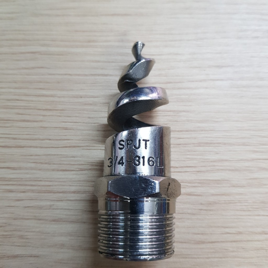 Đầu phun xòe dạng xoắn ốcChất liệu Sus 304 không gỉ, mang lại khả năng chống ăn mòn cao, chính là các vật liệu cấu tạo nên Đầu phun xòe dạng xoắn ốc là một sản phẩm cũng như là sự lựa chọn tối ưu nhất cho bạn. Với nhiều ưu điểm nổi bật như thiết kế nhỏ gọn, Dễ dàng sử dụng trong môi trường nước có nhiều hóa chất, lắp đặt tại nhiều vị trí. Đầu phun xòe dạng xoắn ốc với mô hình phun là hình nón với góc 60-170 độ. Với tốc độ dòng chảy từ các 5.5-4140 lít/phút. Những tia nước của ĐẦU PHUN NƯỚC này khi được phun ra đều với công suất mạnh.