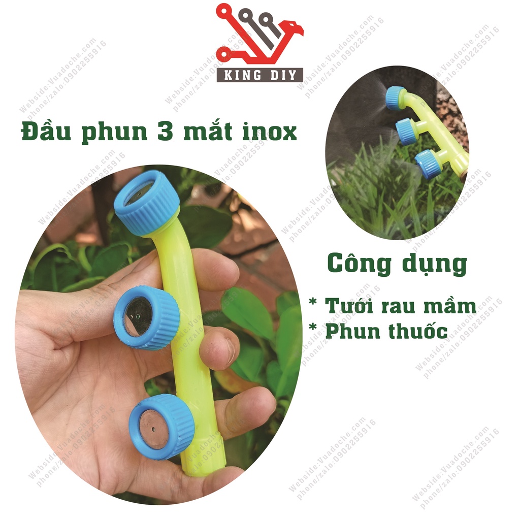 2: Đầu phun 3 mắt inox : Dùng phun thuốc trừ sâu, tưới cần thời gian để ngấm nước , tưới rau mầm và cách loại hoa dễ bị tổn thương
