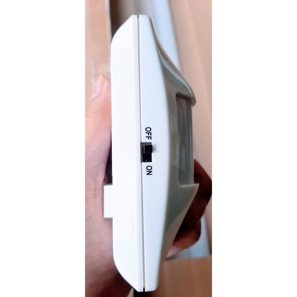 CÁCH TÍCH HỢP VỚI ĐẦU CHUÔNG: cắm chuông vào nguồn điện, dùng 2 ngón tay nhấn cùng lúc nút nhạc phía trên và nút loa ở giữa của đầu chuông sao cho nút loa ở giữa sáng đèn màu xanh mà chuông không kêu ( nếu chuông kêu là không đúng, cần thao tác lại ). Sau đó gạt nút tắt mở bên đầu cảm ứng từ OFF sang ON, khi gạt thì đồng thời nhìn sang chuông, thấy đèn màu xanh ở nút loa của chuông chớp là kết nối thành công. Đợi vài phút thì thử chuyển động trước mặt cảm ứng. nếu chuông kêu là đã kết nối thành công.