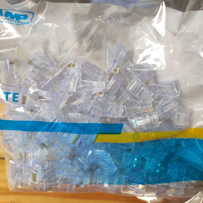 Tên sản phẩm: RJ45 AMP Cat5e- Hộp đầu mạng J45 loại tốt được làm từ chất liệu nhựa trong dẻo tốt bền bỉ theo thời gian