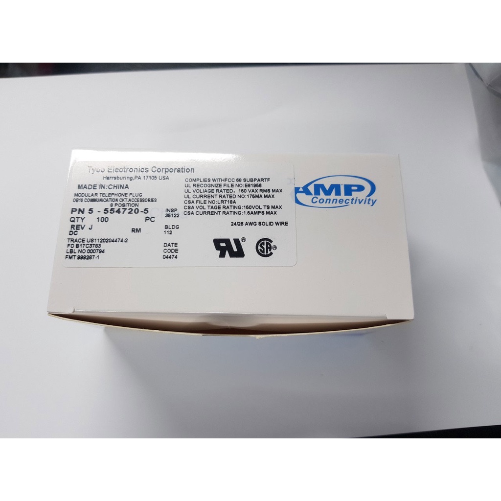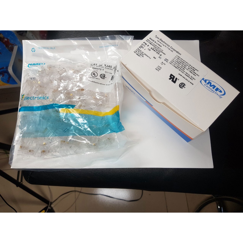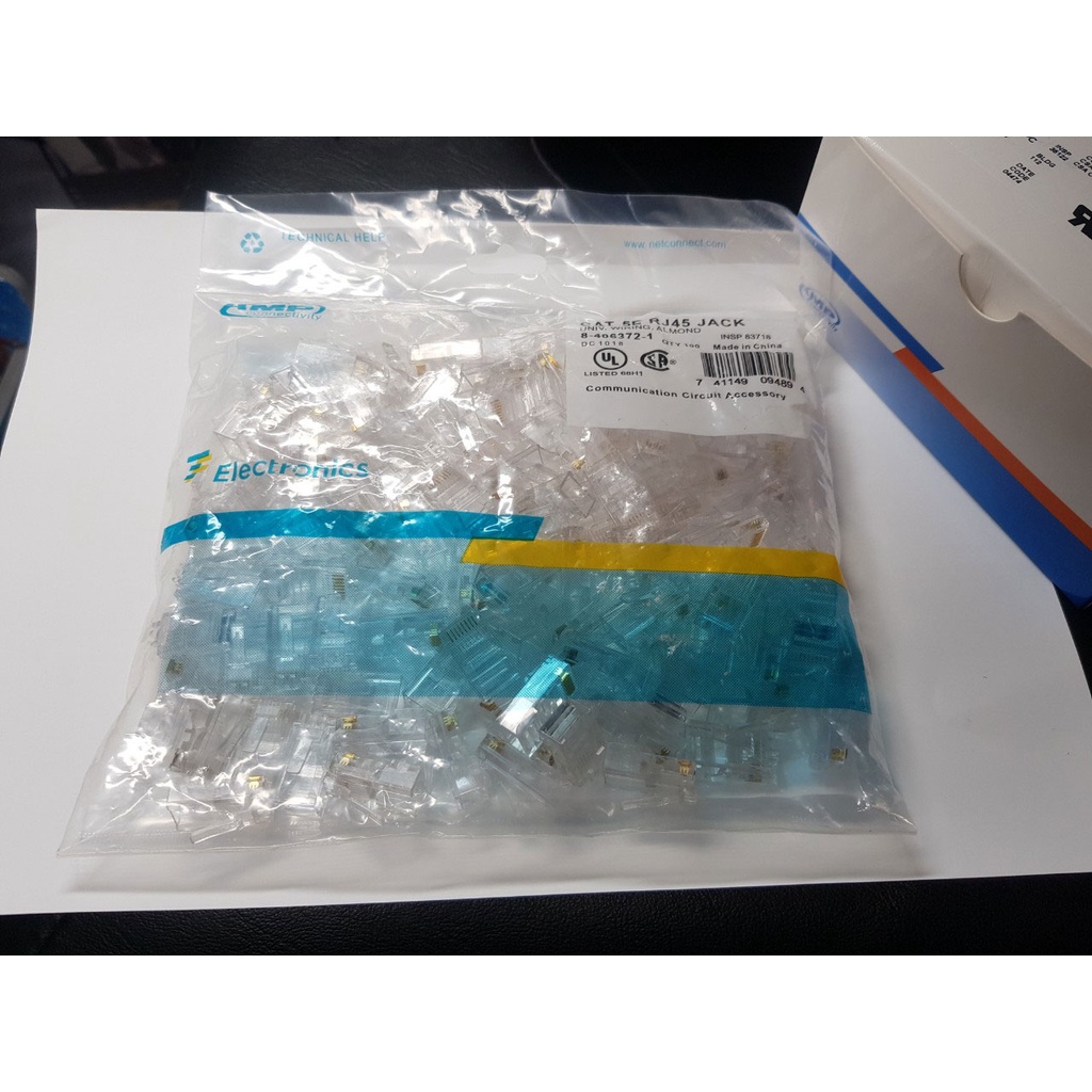 Máy tính & Laptop > Thiết Bị Mạng > Khác || Đầu RJ45 AMP Cat5/5E 100 cái / Hộp - hạt mạng, đầu bấm mạng, đầu RJ45, hạt mạng chính hãngCòn hàng