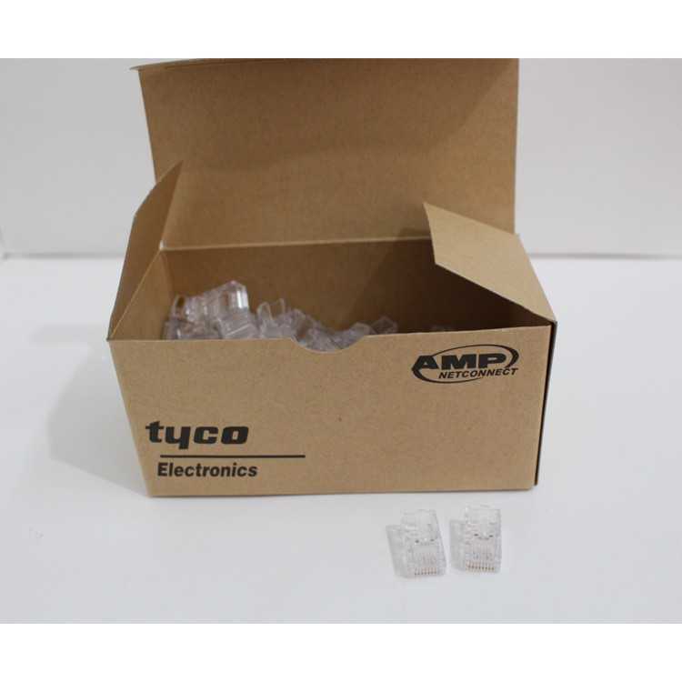 - Đầu bấm mạng RJ45 AMP cat5e chính hãng, chân mạ vàng chất lượng cao ,đạt chuẩn 10/100/1000 ,chuyên cho dự án.