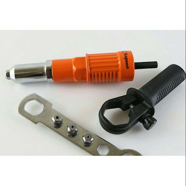 - Giúp việc bắn đinh tán nhẹ nhàng hơn rất nhiều với bộ kít bắn đinh tán tiện dụng. Chỉ cần kết hợp chiếc máy khoan của bạn cùng với bộ kit này.